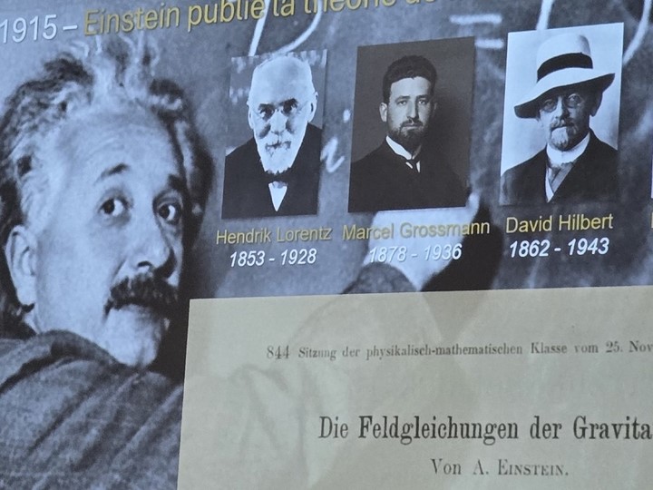 En 1915, Albert Einstein révolutionne la physique en publiant sa théorie de la relativité générale. Développée avec l’aide de mathématiciens comme Marcel Grossmann, David Hilbert et Emmy Noether, cette théorie remplace la notion de force de gravité de Newton par une idée radicalement nouvelle : la courbure de l’espace-temps. Selon Einstein, la matière et l’énergie déforment la géométrie de l’espace-temps, et les objets se déplacent en suivant les chemins les plus courts (géodésiques) au sein de cet espace courbé. Cette théorie repose sur le principe d’équivalence, né d’une expérience de pensée où une personne en chute libre ne ressent plus la gravité, rendant l’accélération indiscernable de la gravitation.